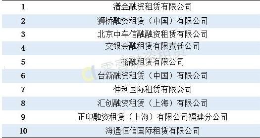 融资租赁登记排行榜
