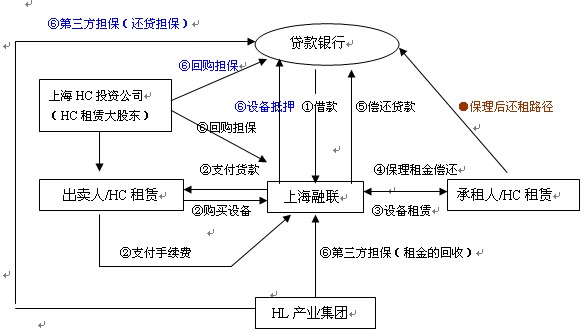 H租赁的大股东上海H投资公司(简称“H投资”)为了盘活该医疗设备的资产,进行新项目的投资,提出了对该设备进行售后回租的设想,并选定上海融联租赁股份有限公司作为设备出租方,H租赁有限公司作为设备出卖方和承租人,而后上海融联与H租赁公司共同选择XM银行作为贷款融资方, H投资公司为回购担保方,HL产业集团为担保方(拥有80多亿元的资产)。