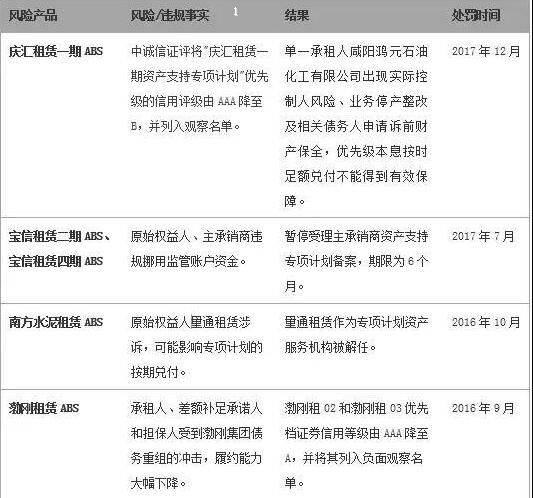 基础资产高度集中、承租人违约带来的风险。庆汇租赁作为此类风险事件的典型,承租人单一集中,由于承租人停产整改,债务人申请财产保全,优先级债券足额兑付面临考验。