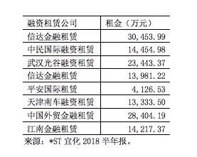 半年报发布后,仍有租赁公司为其放款。9月15日,*ST宜化公告称,其全资子公司内蒙宜化拟以部分在用化工生产机器设备与天津南车融资租赁有限公司开展融资租赁业务,融资金额为人民币15100万元,融资期限为4年。