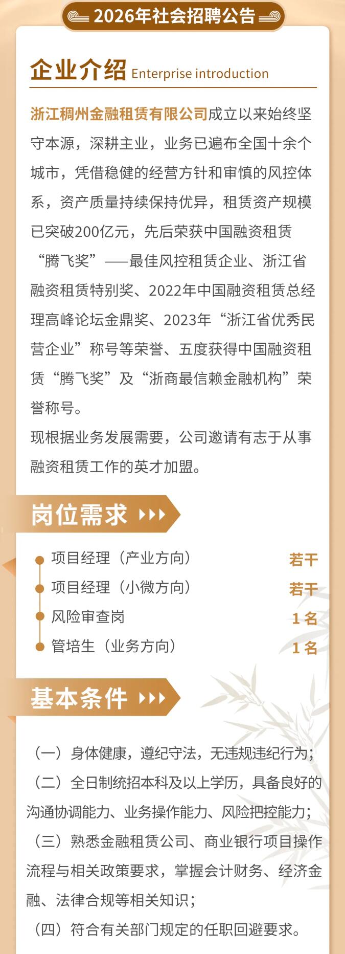 • [26-03-01]浙江稠州金租2026年社会招聘公告 …