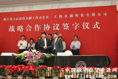 2011年10月21日浙江省政府金融工作办公室与工银金融租赁有限公司今天在此间签署合作协议,共同支持浙江中小企业发展。